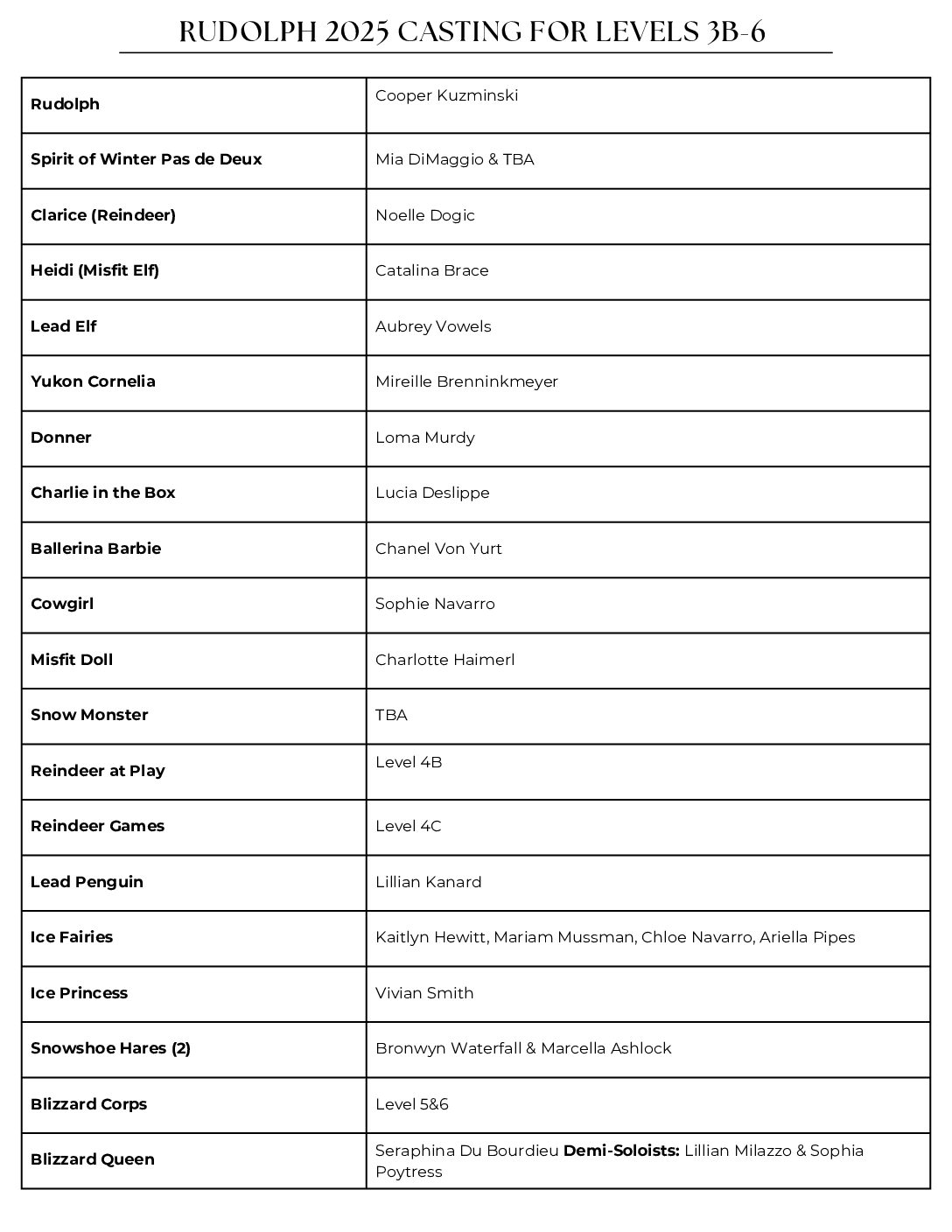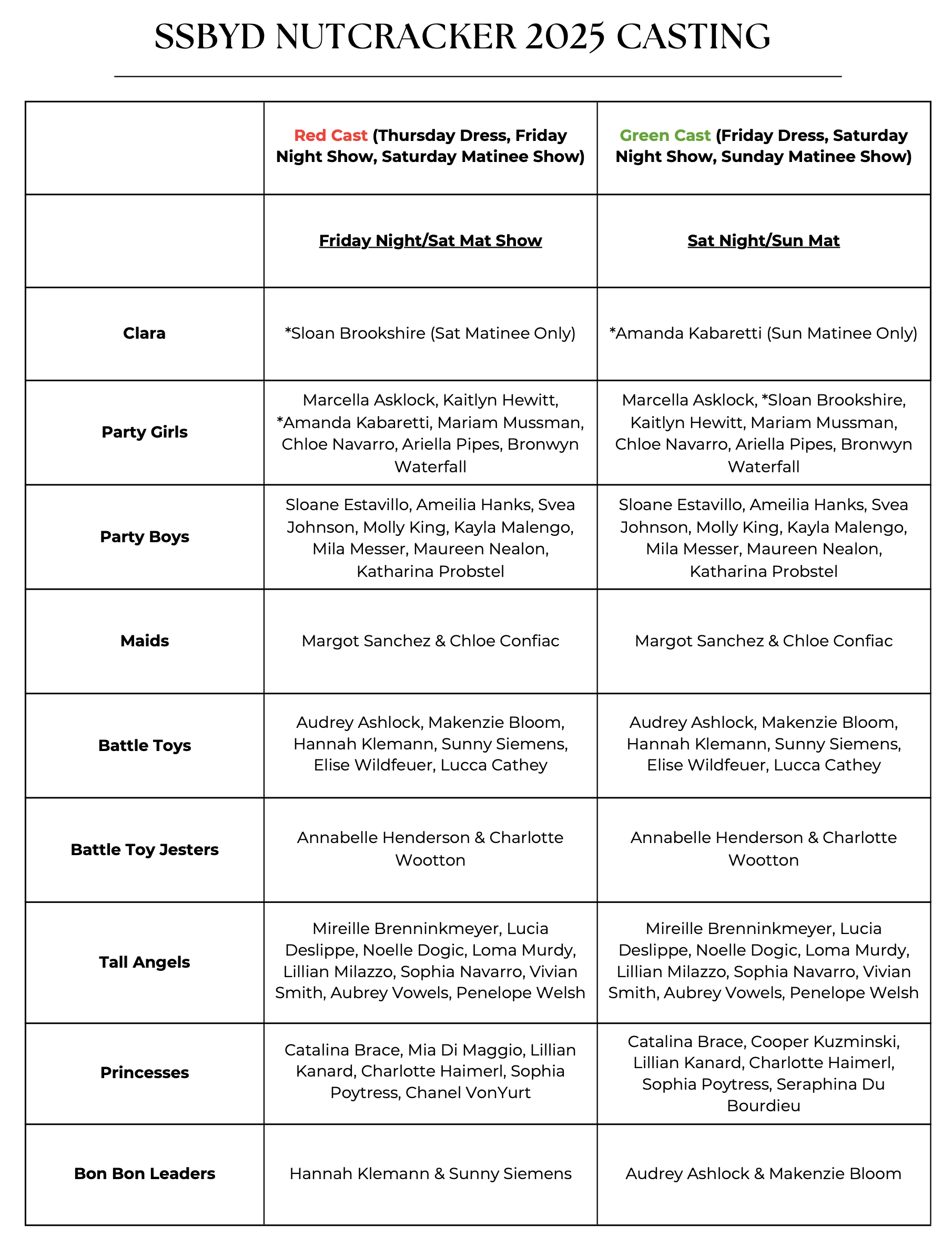 Nutcracker Casting 2025